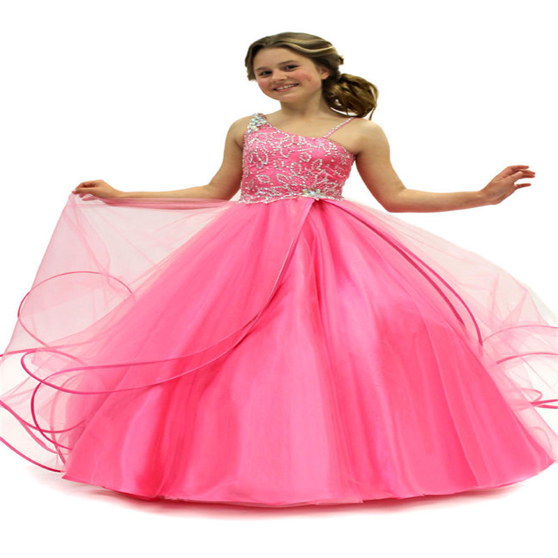 Hot Pink Straps Long Little Girls Pageant Dresses Beading ... - princess pink ball gowns for girls