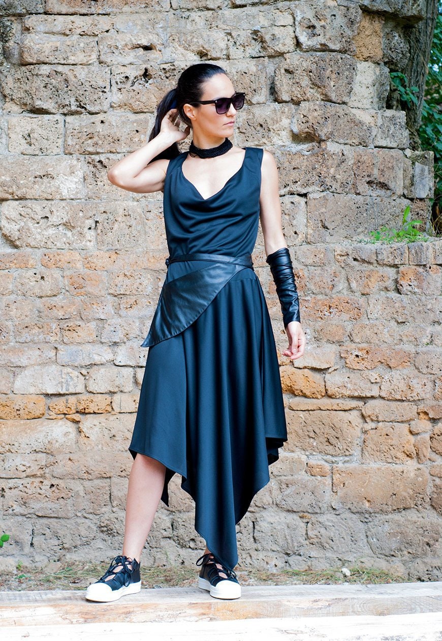 Black Elven Dress Asymmetrical Summer Dress Fantasy Dress ... - fairytale dresses black