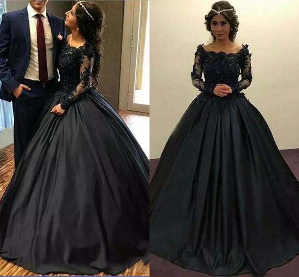 Charming Black Princess Evening Dresses Long Sleeve Lace ... - princess dresses for adults black