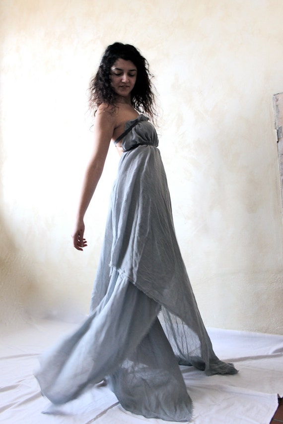 Ethereal fairy gown in dusty blue muslin - ethereal fairy prom dress