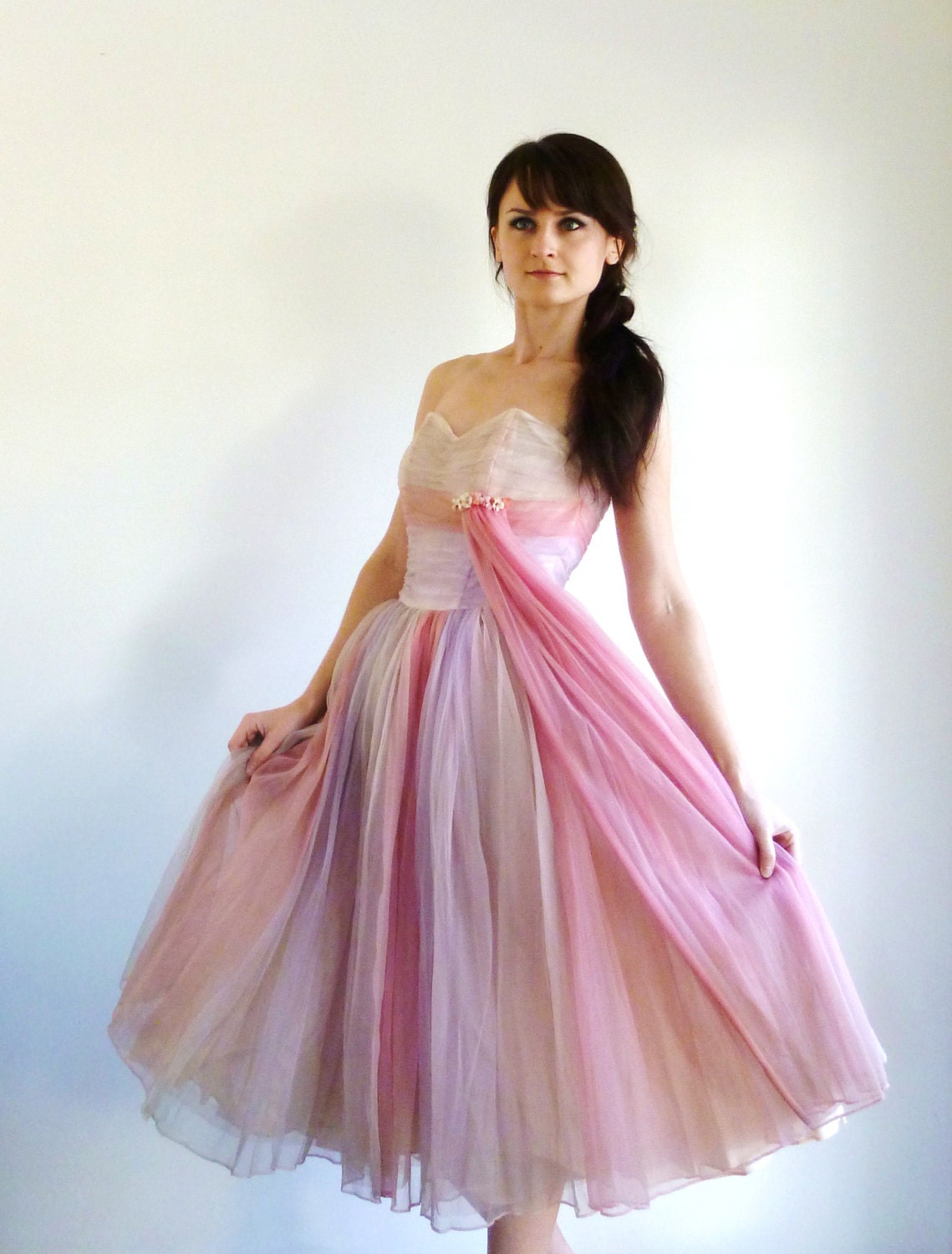 Fairy Tale Vintage 1950s Pink Prom Dress Strapless by ... - fairy tale fairytale themed prom dresses