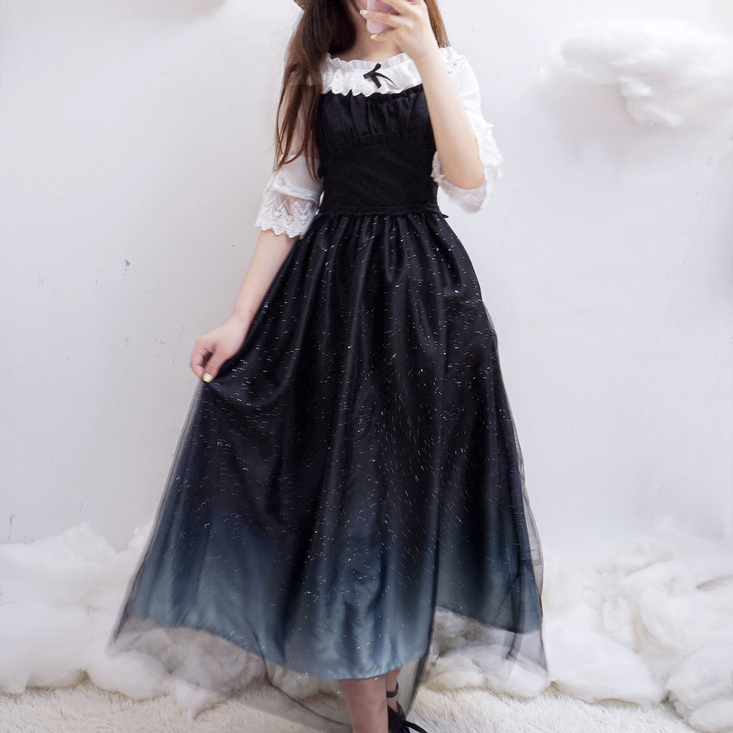 Galaxy Black Starry Fairy Dress Long Short Chiffon Natural ... - fairytale dresses black