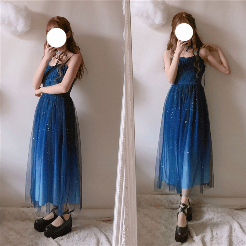 Free Shipping Galaxy Blue/Black Starry Fairy Dress ... - short blue fairy dress