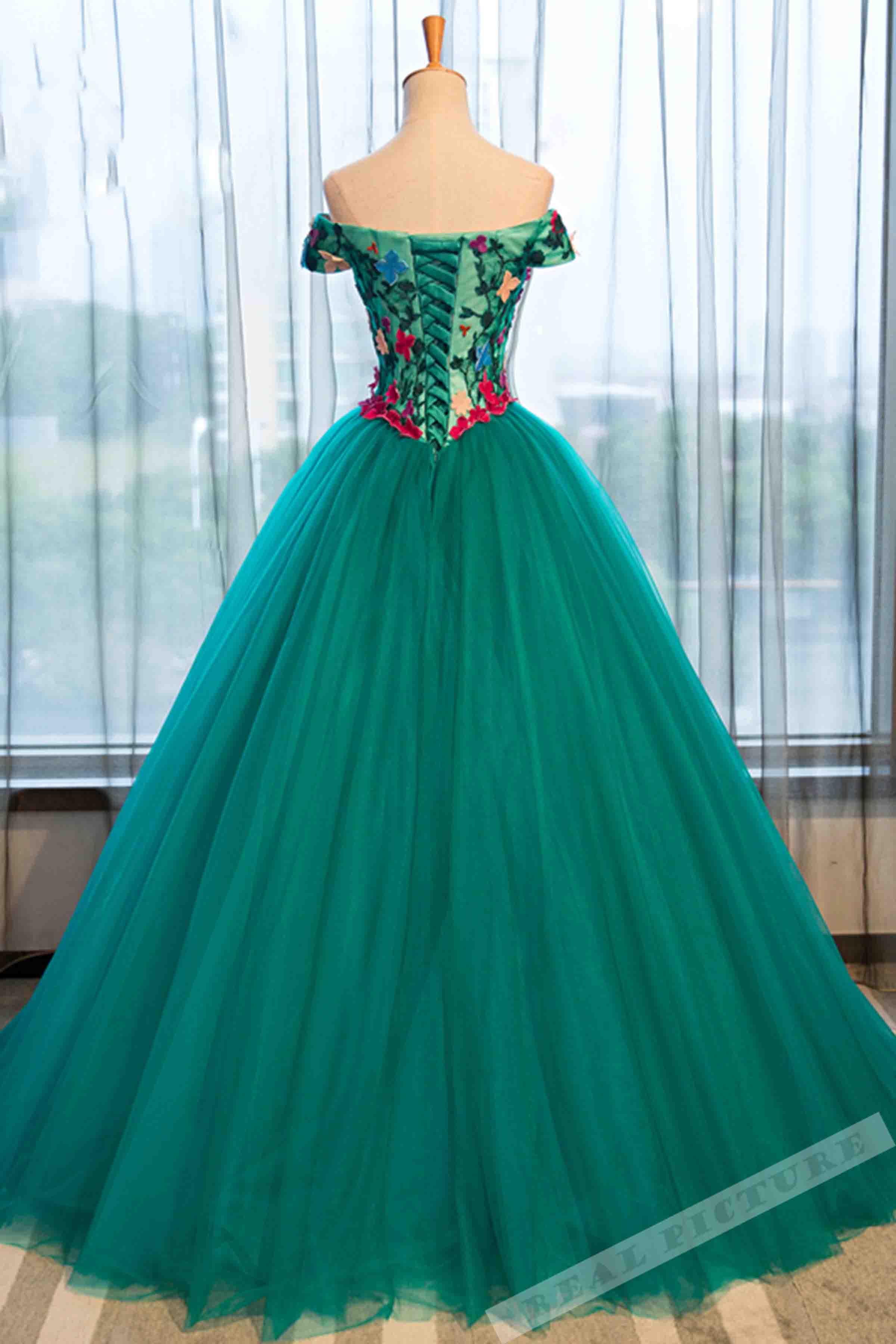Green tulle applique off-shoulder A-line prom dress,ball ... - teenage ball gowns for girls