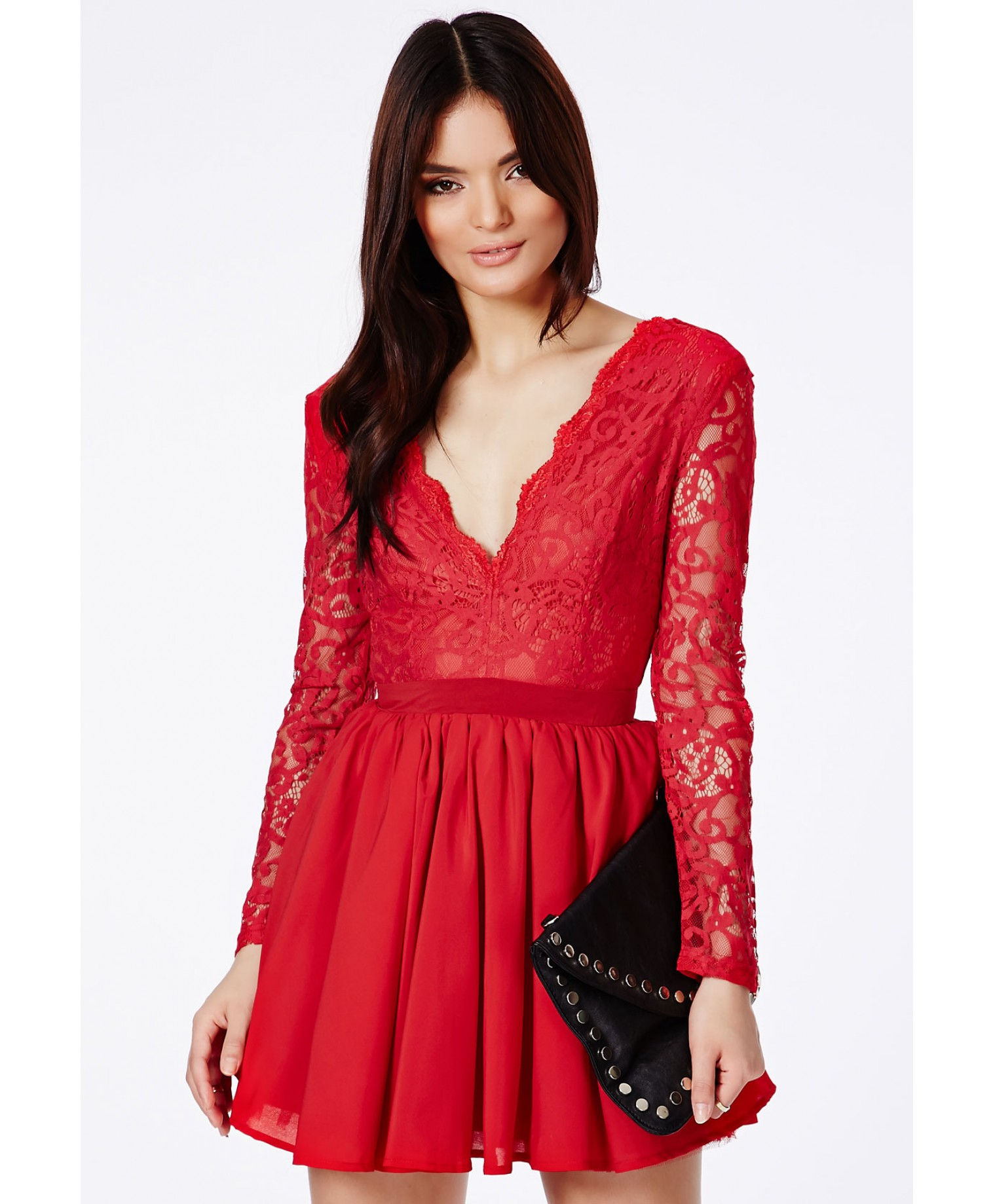 Missguided Dayana Red Lace Sleeve Puff Ball Dress in Red ... - red ball gowns with sleeves