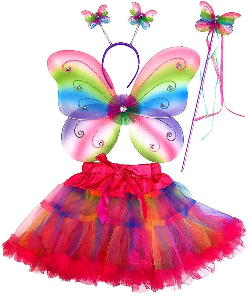 Mozlly Kids Neon Rainbow Glittery Butterfly Fairy Tutu ... - fairy butterfly dress for kids