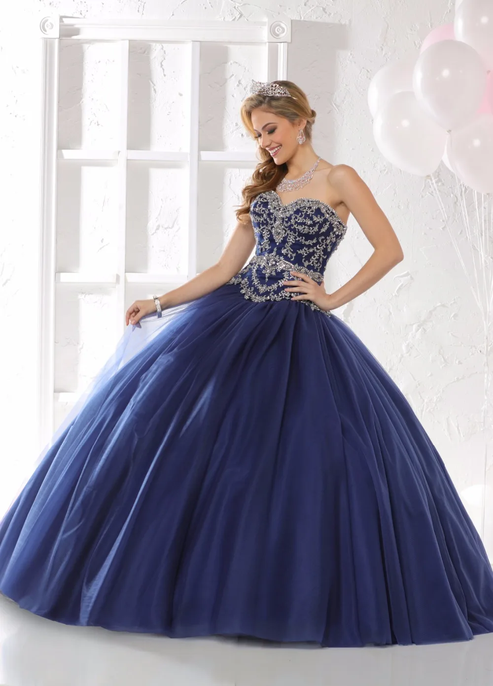 Navy Blue Quinceanera Dresses Party Ball Gown Long Tulle ... - navy blue princess ball gowns