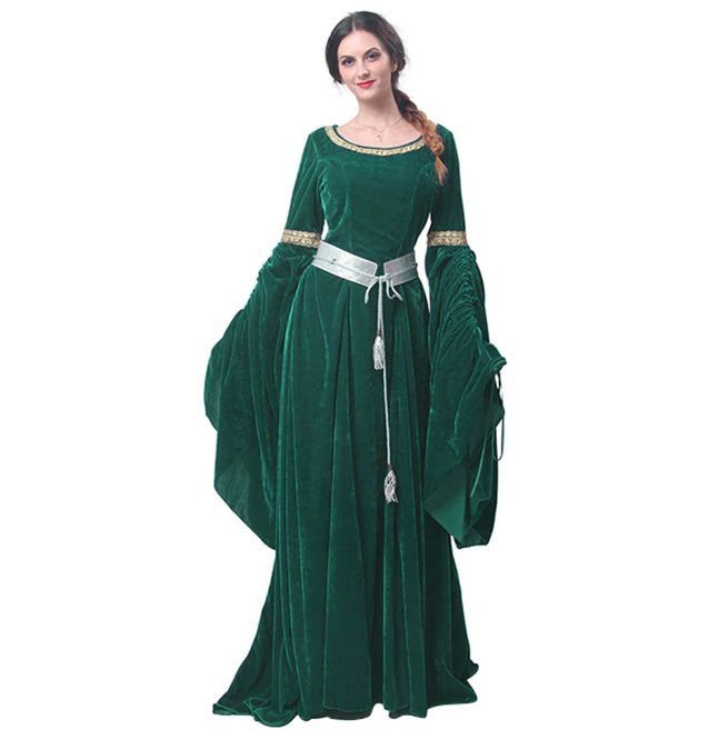 Vintage Flare Sleeve Belt Floor Length Medieval Dress ... - victorian royal ball gowns aesthetic